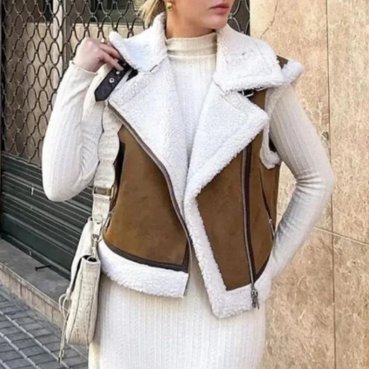 Featuring a warm faux-suede exterior and a soft plush interior, this brown-colored vest is perfect for layering over your favorite outfits.